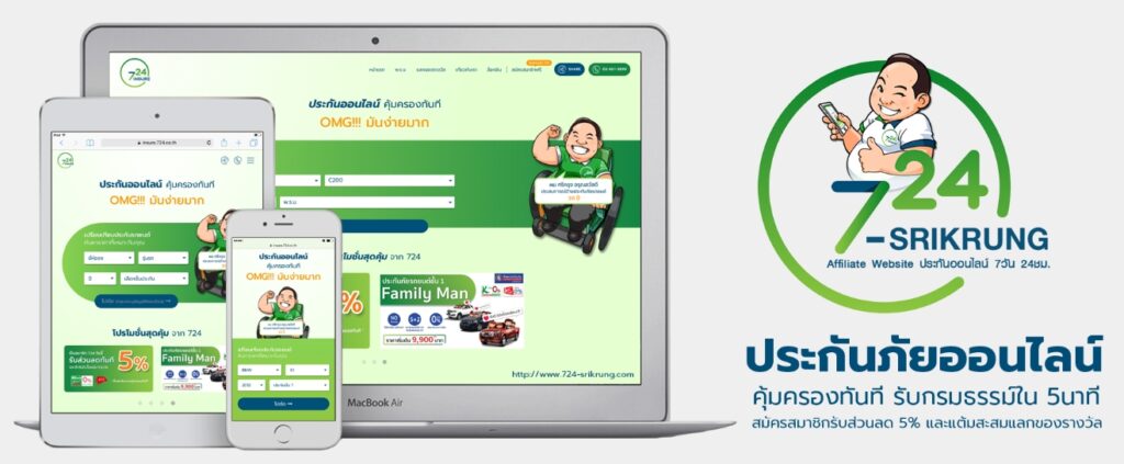 - รับเว็บไซต์สำหรับขายสินค้าประกันภัยออนไลน์ได้ตลอด 7 วัน 24 ชม. 724srikrung.com
